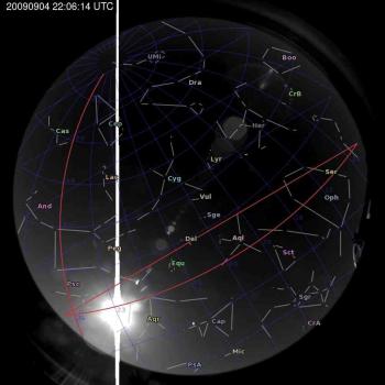 Annotated all-sky camera image from La Palma observatory taken on 2009-09-04 at 22:06:14 UT
