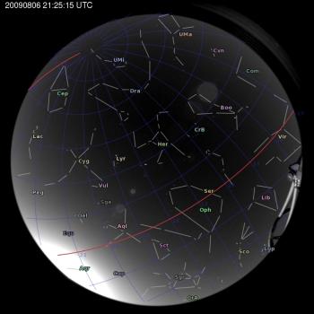 Keywords: all-sky 2009-08-06 21:25:15 Liverpool Telescope constellations ecliptic Description: