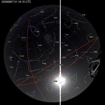Keywords: all-sky 2009-08-07 01:16:15 Liverpool Telescope constellations ecliptic Description: