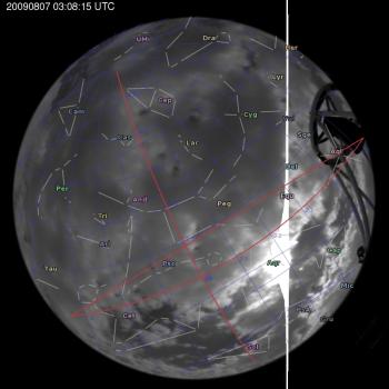 Annotated all-sky camera image from La Palma observatory taken on 2009-08-07 at 03:08:15 UT