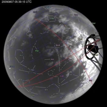 Annotated all-sky camera image from La Palma observatory taken on 2009-08-07 at 05:39:15 UT
