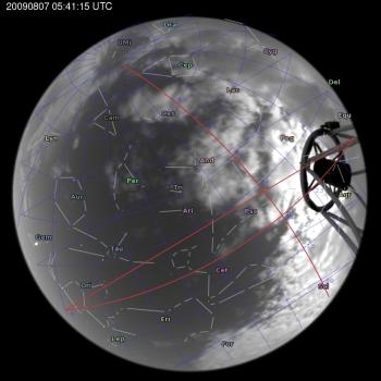 Annotated all-sky camera image from La Palma observatory taken on 2009-08-07 at 05:41:15 UT
