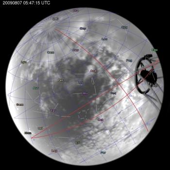 Annotated all-sky camera image from La Palma observatory taken on 2009-08-07 at 05:47:15 UT