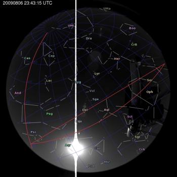 Annotated all-sky camera image from La Palma observatory taken on 2009-08-06 at 23:43:15 UT