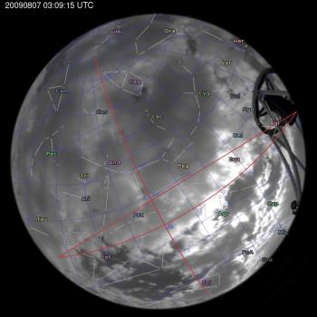 Annotated all-sky camera image from La Palma observatory taken on 2009-08-07 at 03:09:15 UT
