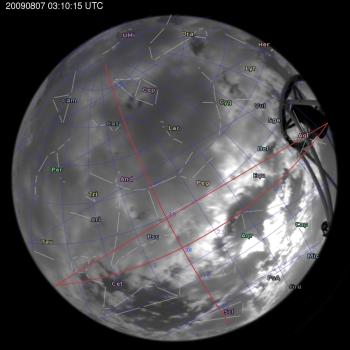 Annotated all-sky camera image from La Palma observatory taken on 2009-08-07 at 03:10:15 UT