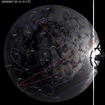Annotated all-sky camera image from La Palma observatory taken on 2009-08-07 at 05:10:15 UT