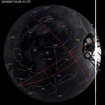 Annotated all-sky camera image from La Palma observatory taken on 2009-08-07 at 05:28:15 UT