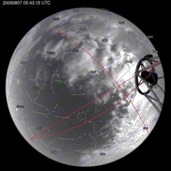Annotated all-sky camera image from La Palma observatory taken on 2009-08-07 at 05:43:15 UT