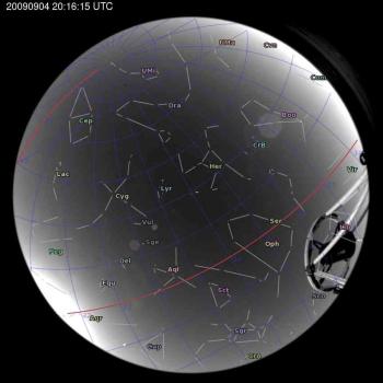 Annotated all-sky camera image from La Palma observatory taken on 2009-09-04 at 20:16:15 UT