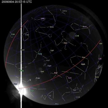 Annotated all-sky camera image from La Palma observatory taken on 2009-09-04 at 20:57:15 UT