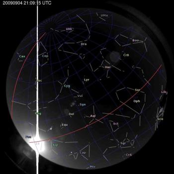 Annotated all-sky camera image from La Palma observatory taken on 2009-09-04 at 21:09:15 UT