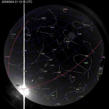 Annotated all-sky camera image from La Palma observatory taken on 2009-09-04 at 21:13:15 UT