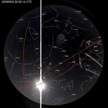 Annotated all-sky camera image from La Palma observatory taken on 2009-09-04 at 22:52:14 UT