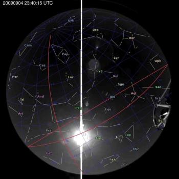 Annotated all-sky camera image from La Palma observatory taken on 2009-09-04 at 23:40:15 UT