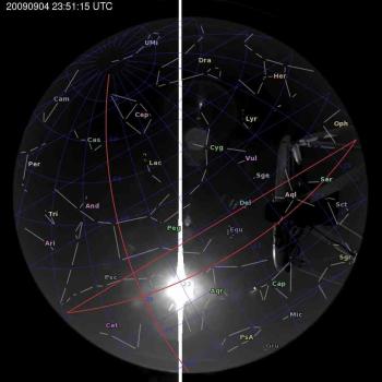 Annotated all-sky camera image from La Palma observatory taken on 2009-09-04 at 23:51:15 UT