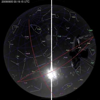 Annotated all-sky camera image from La Palma observatory taken on 2009-09-05 at 00:19:15 UT
