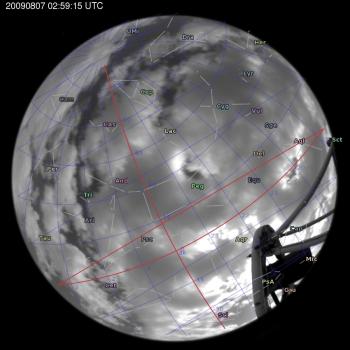 Annotated all-sky camera image from La Palma observatory taken on 2009-08-07 at 02:59:15 UT