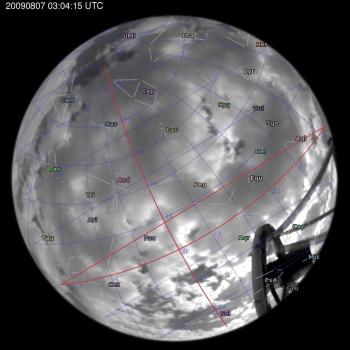 Annotated all-sky camera image from La Palma observatory taken on 2009-08-07 at 03:04:15 UT