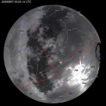 Annotated all-sky camera image from La Palma observatory taken on 2009-08-07 at 03:20:14 UT