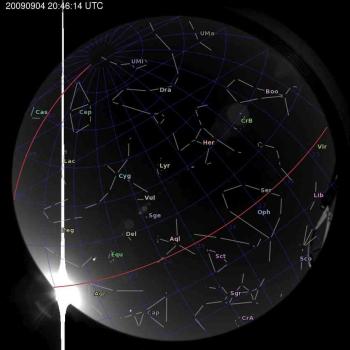 Annotated all-sky camera image from La Palma observatory taken on 2009-09-04 at 20:46:14 UT