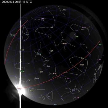 Annotated all-sky camera image from La Palma observatory taken on 2009-09-04 at 20:51:15 UT