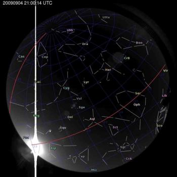 Annotated all-sky camera image from La Palma observatory taken on 2009-09-04 at 21:00:14 UT