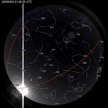 Annotated all-sky camera image from La Palma observatory taken on 2009-09-04 at 21:08:15 UT