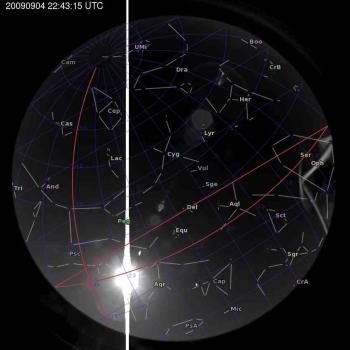 Annotated all-sky camera image from La Palma observatory taken on 2009-09-04 at 22:43:15 UT