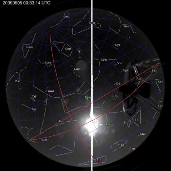 Annotated all-sky camera image from La Palma observatory taken on 2009-09-05 at 00:33:14 UT
