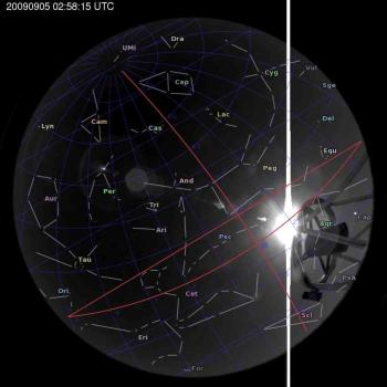 Annotated all-sky camera image from La Palma observatory taken on 2009-09-05 at 02:58:15 UT