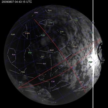 Annotated all-sky camera image from La Palma observatory taken on 2009-08-07 at 04:43:15 UT