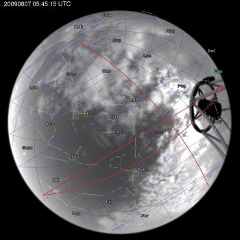 Annotated all-sky camera image from La Palma observatory taken on 2009-08-07 at 05:45:15 UT