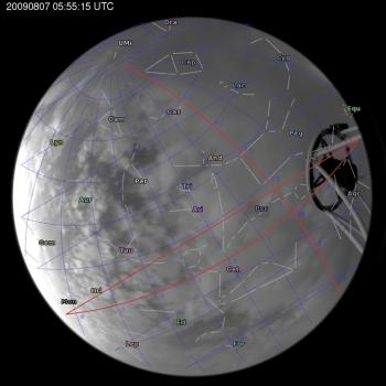 Annotated all-sky camera image from La Palma observatory taken on 2009-08-07 at 05:55:15 UT