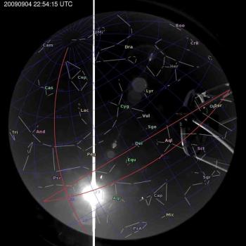 Annotated all-sky camera image from La Palma observatory taken on 2009-09-04 at 22:54:15 UT