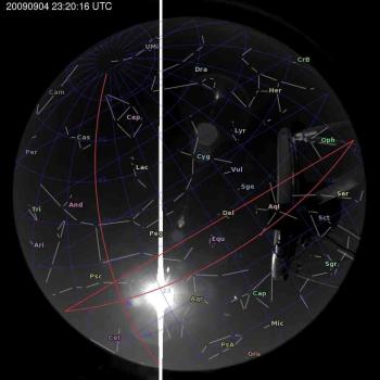 Annotated all-sky camera image from La Palma observatory taken on 2009-09-04 at 23:20:16 UT