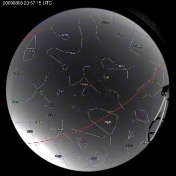Keywords: all-sky 2009-08-06 20:57:15 Liverpool Telescope constellations ecliptic Description: