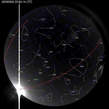 Annotated all-sky camera image from La Palma observatory taken on 2009-09-04 at 20:44:14 UT