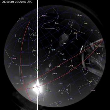 Annotated all-sky camera image from La Palma observatory taken on 2009-09-04 at 22:29:15 UT
