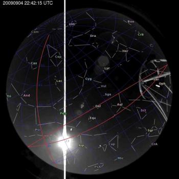 Annotated all-sky camera image from La Palma observatory taken on 2009-09-04 at 22:42:15 UT