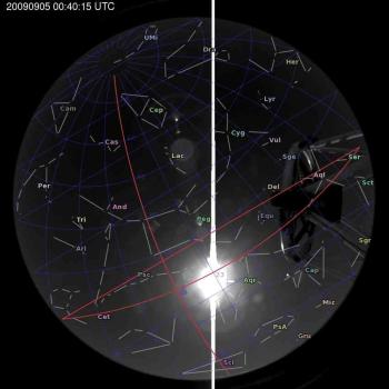 Annotated all-sky camera image from La Palma observatory taken on 2009-09-05 at 00:40:15 UT