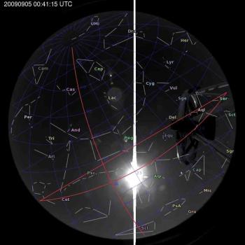 Annotated all-sky camera image from La Palma observatory taken on 2009-09-05 at 00:41:15 UT