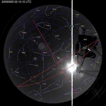 Annotated all-sky camera image from La Palma observatory taken on 2009-09-05 at 02:10:15 UT
