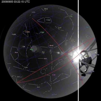 Annotated all-sky camera image from La Palma observatory taken on 2009-09-05 at 03:22:15 UT