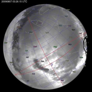 Annotated all-sky camera image from La Palma observatory taken on 2009-08-07 at 03:26:15 UT