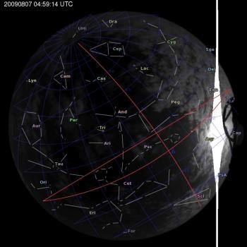 Annotated all-sky camera image from La Palma observatory taken on 2009-08-07 at 04:59:14 UT