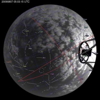 Annotated all-sky camera image from La Palma observatory taken on 2009-08-07 at 05:03:15 UT