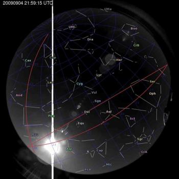 Annotated all-sky camera image from La Palma observatory taken on 2009-09-04 at 21:59:15 UT