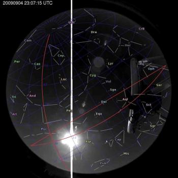 Annotated all-sky camera image from La Palma observatory taken on 2009-09-04 at 23:07:15 UT