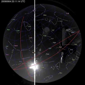 Annotated all-sky camera image from La Palma observatory taken on 2009-09-04 at 23:11:14 UT